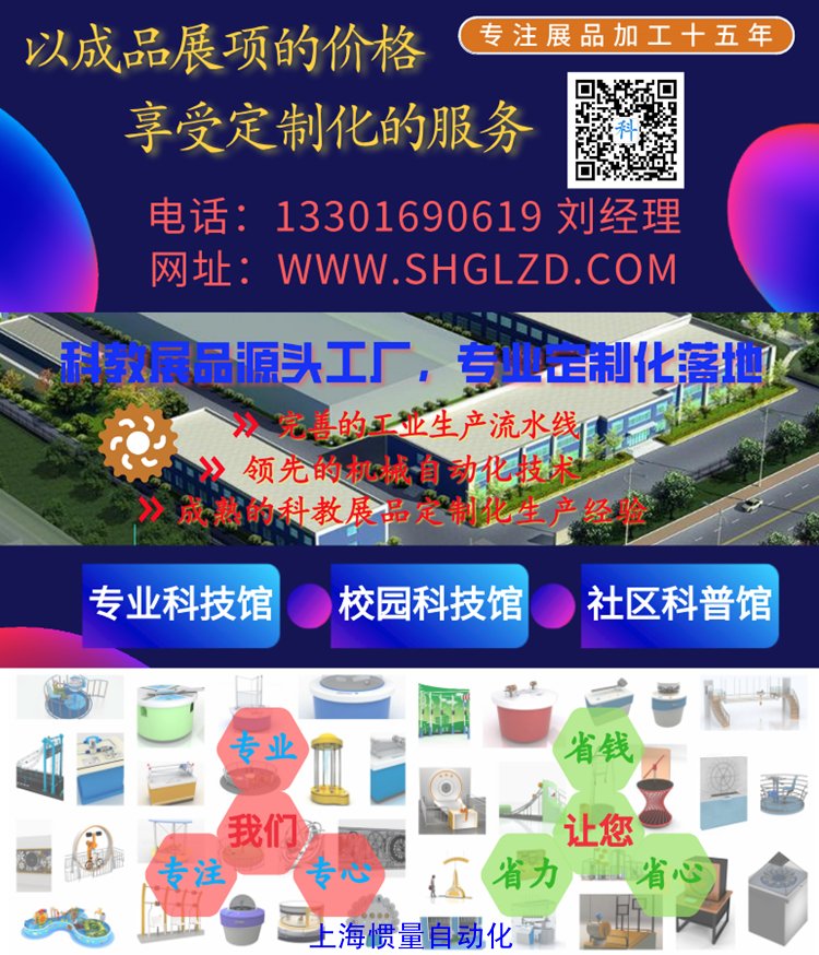 上海慣量自動(dòng)化有限公司是一家依托于完善的工業(yè)生產(chǎn)流水線及領(lǐng)先的機(jī)械自動(dòng)化技術(shù)水平、專注于科教展品定制化設(shè)計(jì)生產(chǎn)的專業(yè)化設(shè)備制作公司,主要專業(yè)生產(chǎn)省市地縣區(qū)科技館展品、科普器材,航空主題館、科普主題館、校園社區(qū)科普館和科學(xué)探究實(shí)驗(yàn)室的教學(xué)儀器、用具,公司為科普產(chǎn)品工廠聯(lián)盟理事單位。產(chǎn)品質(zhì)量過(guò)硬,多次受到有關(guān)領(lǐng)導(dǎo)、專家、教授的好評(píng)與贊賞,一次性通過(guò)驗(yàn)收。產(chǎn)品經(jīng)過(guò)不斷地創(chuàng)新、改進(jìn)完善,它將以更卓越的性能、優(yōu)異的品質(zhì)、高檔次的配置及操作簡(jiǎn)單、功能齊全、優(yōu)惠的價(jià)格和其良好的售后服務(wù)質(zhì)量奉獻(xiàn)給廣大客戶。